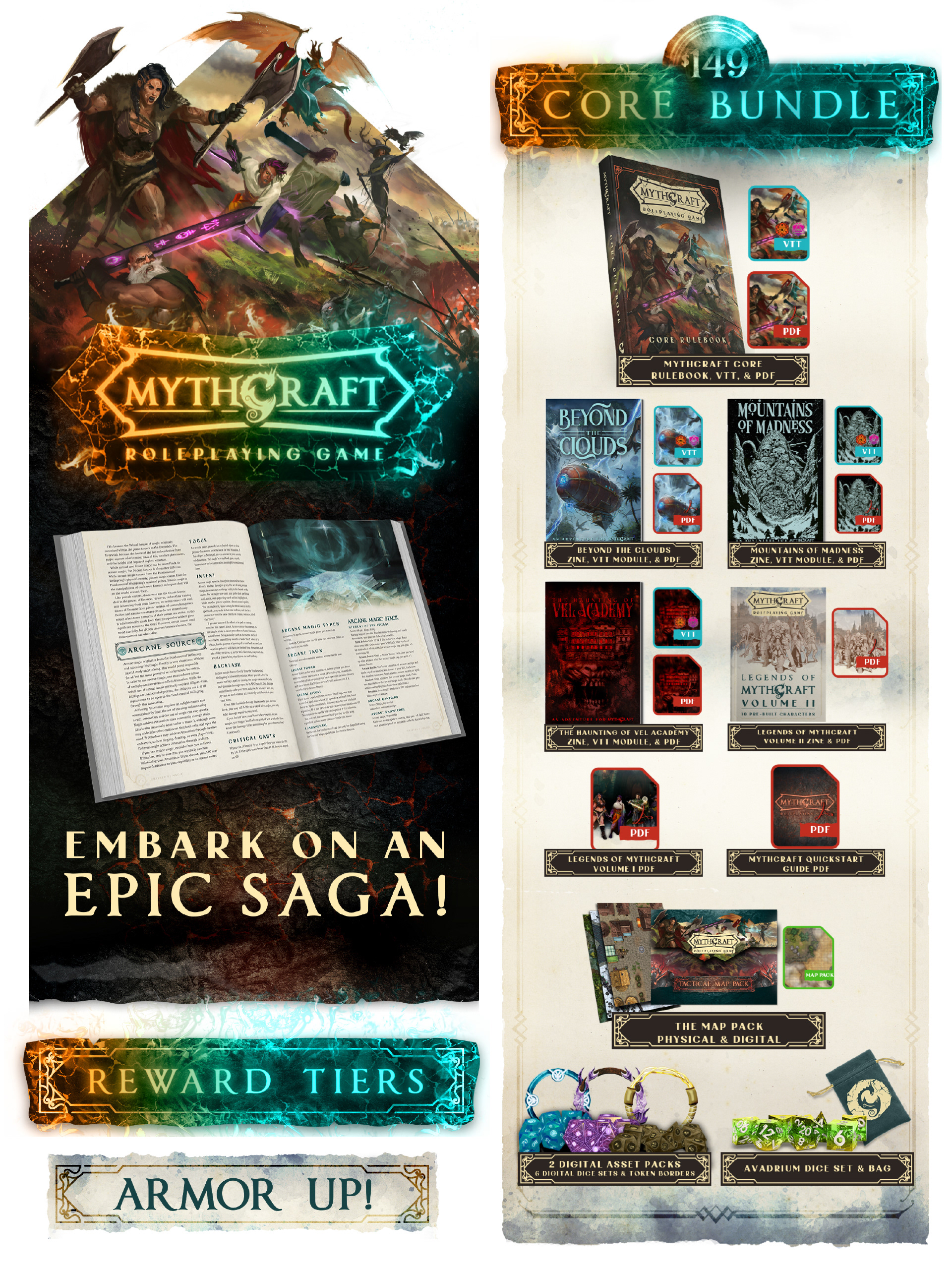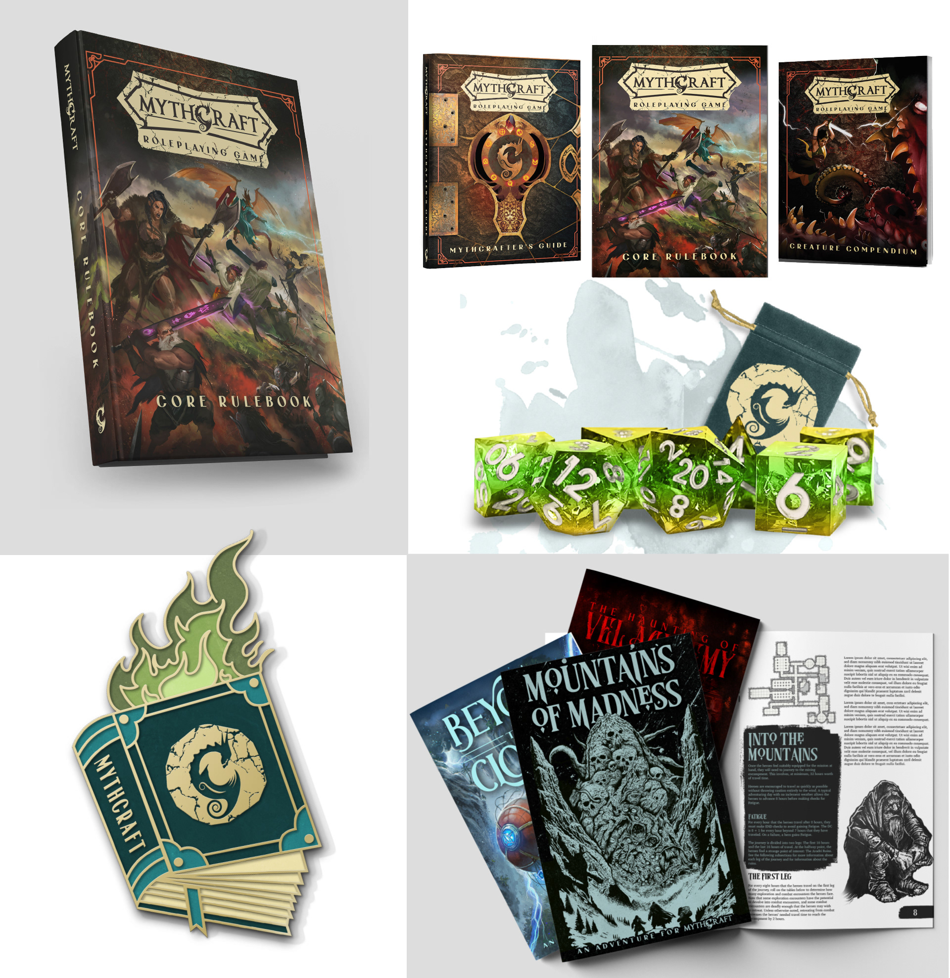 MythCraft is a TTRPG designed and developed by QuasiReal Publishing House, and was successfully crowdfunded for new adventures, book updates, and VTT support on January 7th 2025. Built on the familiar but reimagined d20 systems you know and love, this expansive, fully realized TTRPG brings together modern systems, unmatched customization, and seamless gameplay to create a game that’s as engaging as it is innovative.